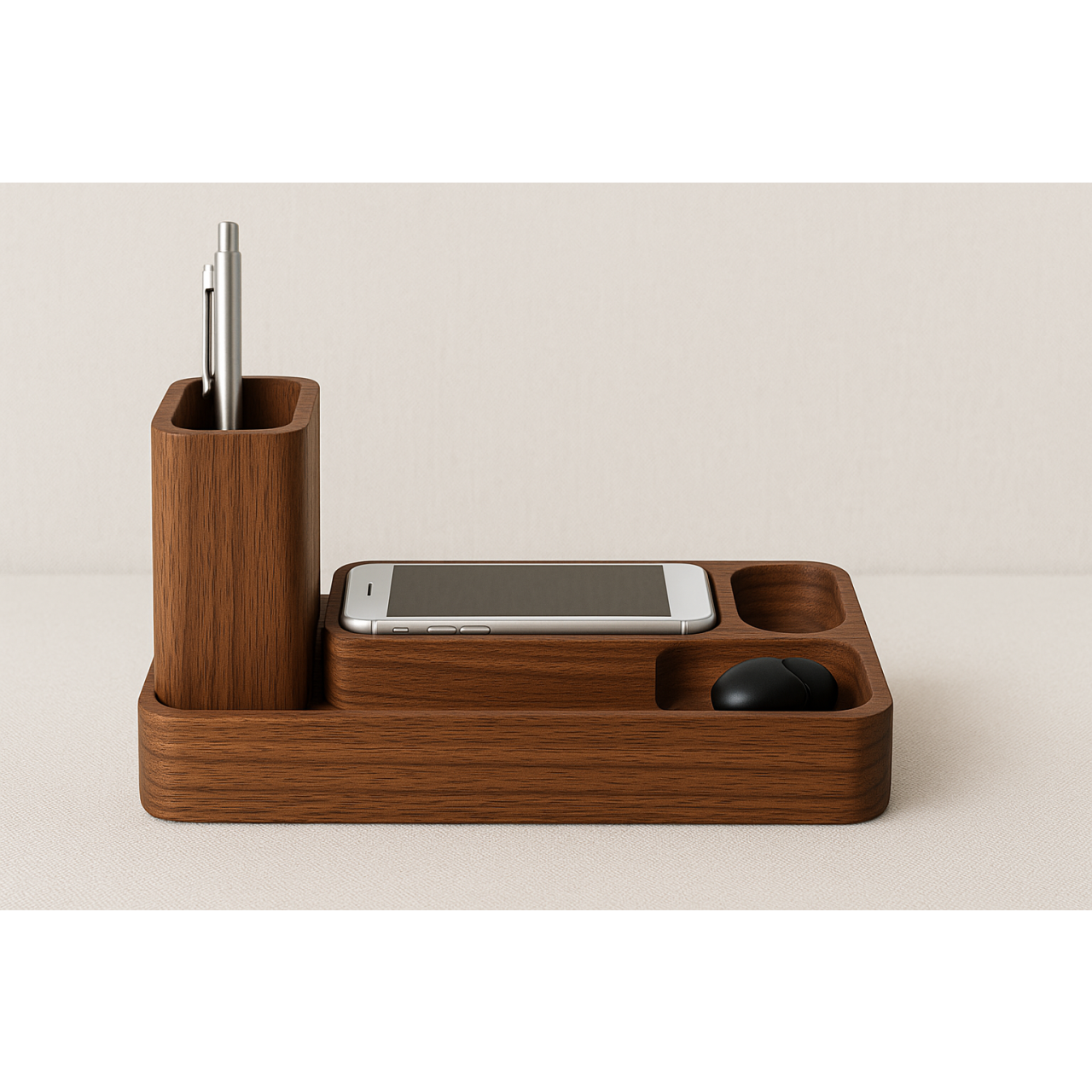 Organize your stationery and gadgets with this elegant solid walnut wood organizer. Designed for both style and function, it complements any modern workspace.